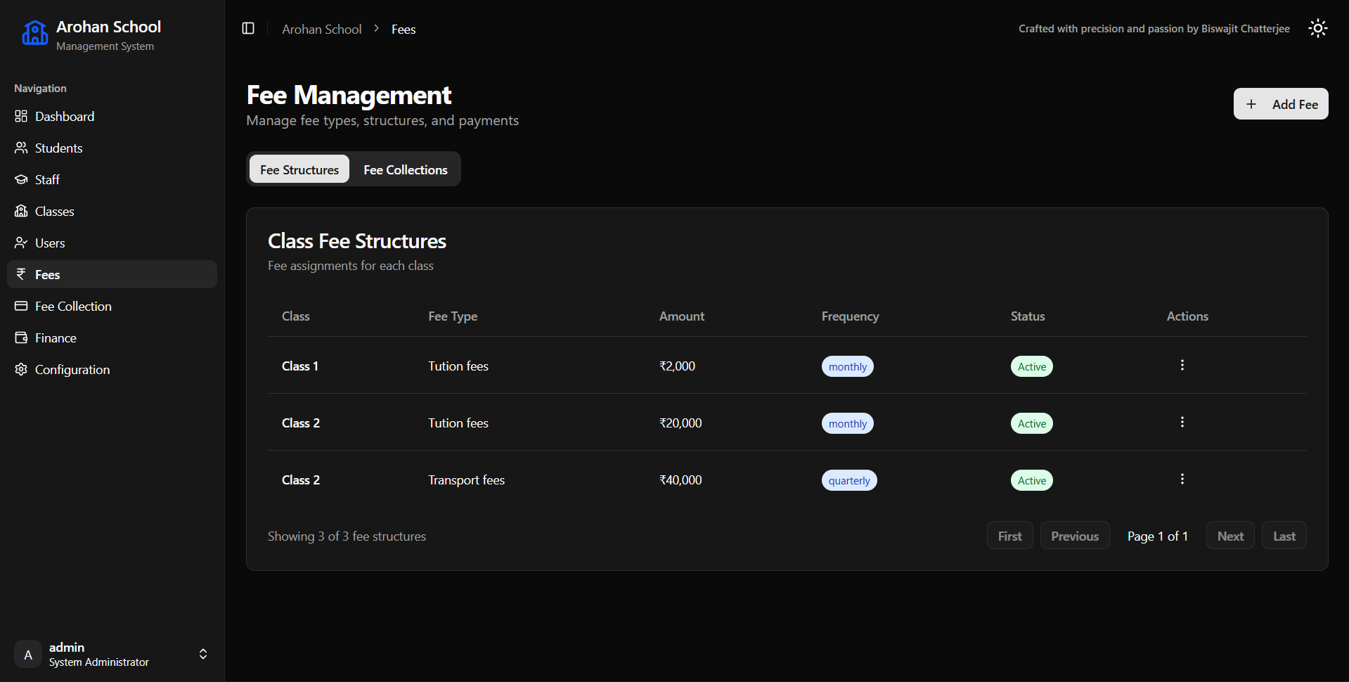 - 💰 Fee Management: Customize complex fee structures, track payments, and generate receipts