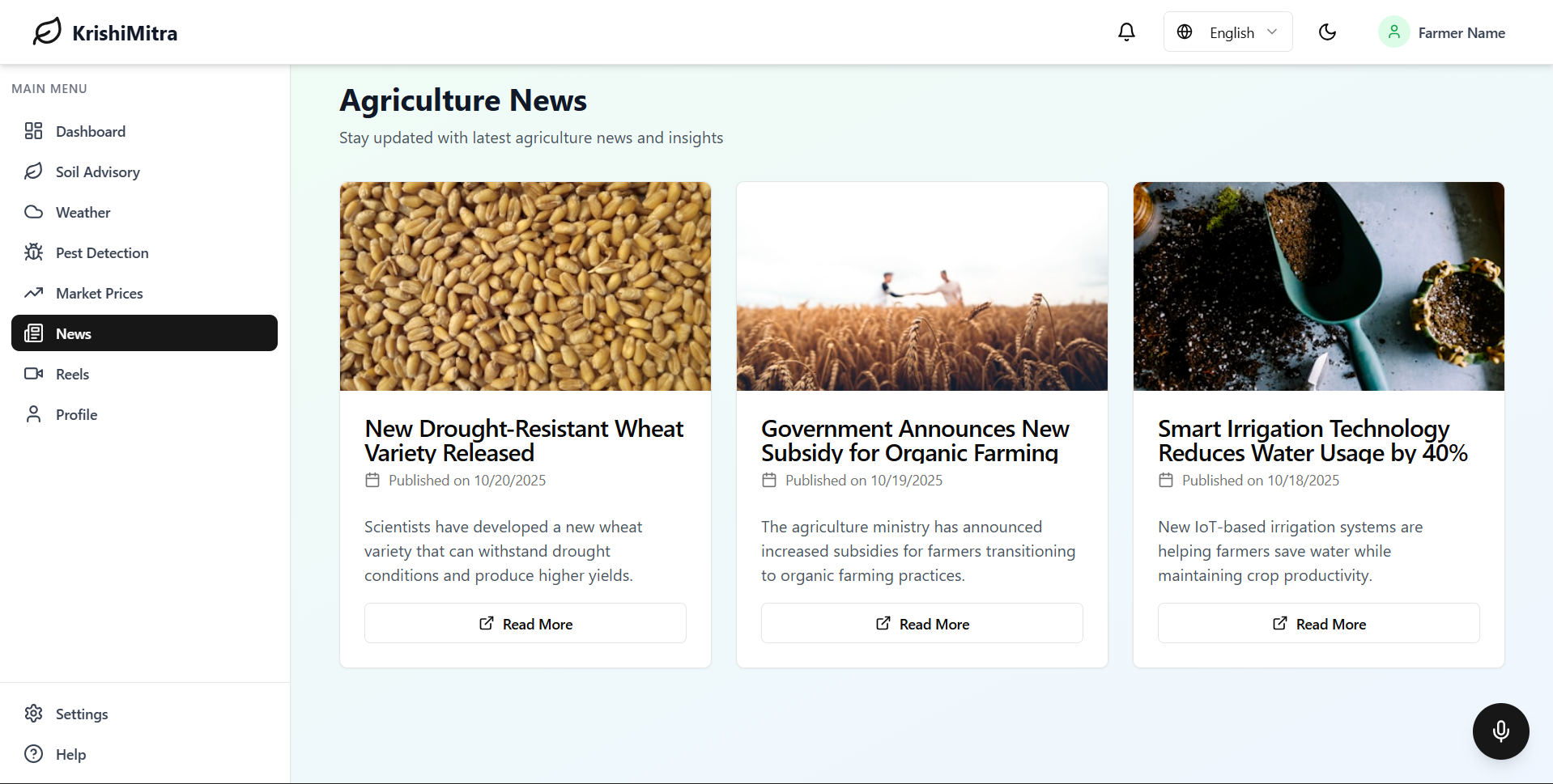 - 🌱 Soil & Fertilizer Advisory: Personalized soil health reports and recommendations